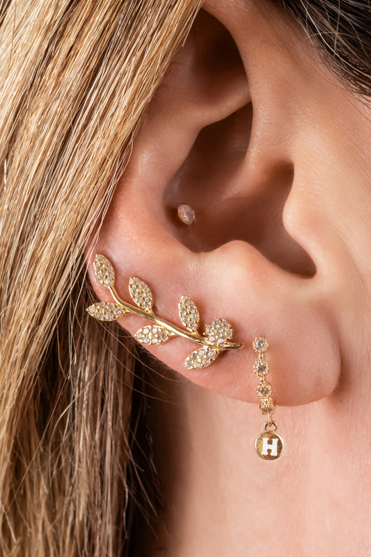 Lambada de oro solido en 10 kilates con forma de rama con hojas con zirconia