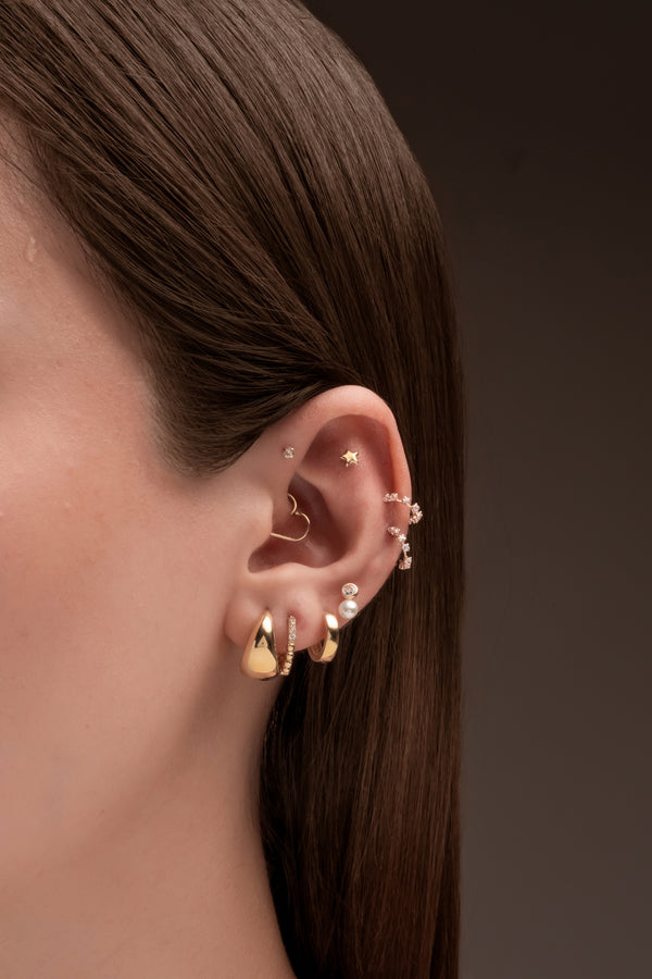 Arracada de oro sólido en 10 kilates con zirconias tamaño mediana.
