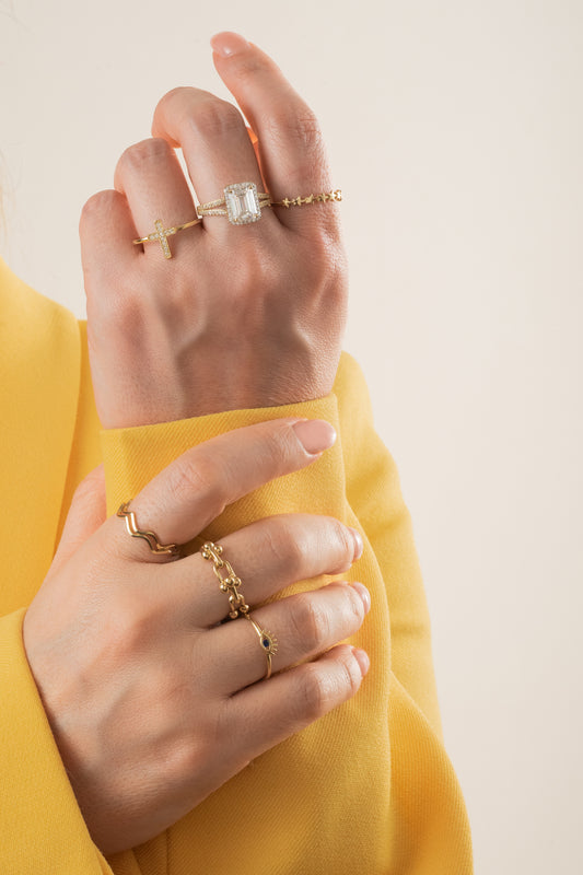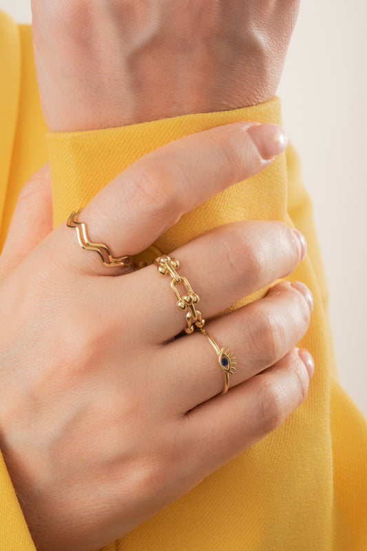Anillo de oro solido en 10 kilates con un ojo en la parte del centro