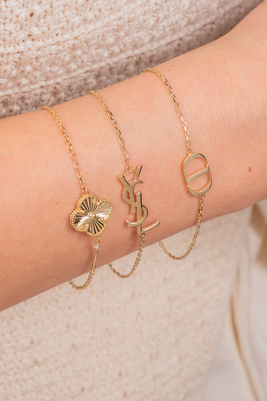 Pulsera de oro sólido en 10 kilates con iniciales YSL lisas grandes.