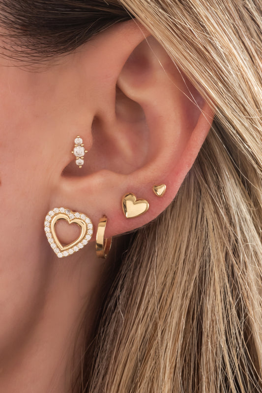 Arete de oro solido en 10 kilates con forma de corazón liso