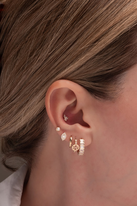 Arracada de oro solido de 14 kilates con un contorno de zirconias