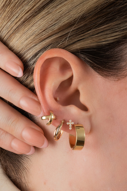 Arracada de oro solido en 10 kilates con forma ancha lisa