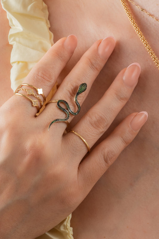 Anillo churumbela de oro sólido en 14 kilates con zirconias minis bisel liso.
