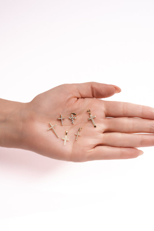 Dije 10 kilates estilo de cruz de cilindro, una cruz pequeña de zirconias en el centro.