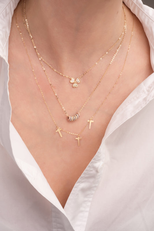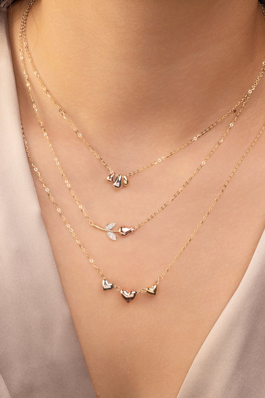 Gargantilla 10 kilates dije de trébol de tres hojas diamantado en oro florentino