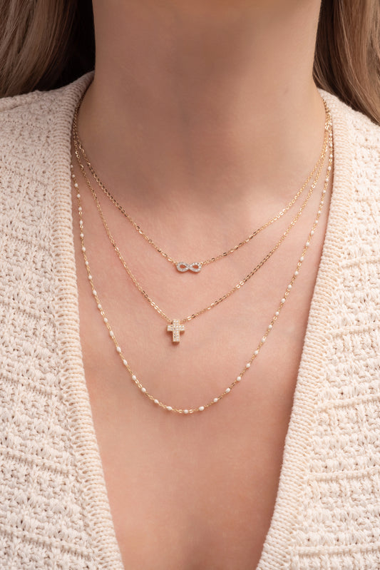 Gargantilla 10 kilates dije de infinito de zirconias y baño de oro blanco