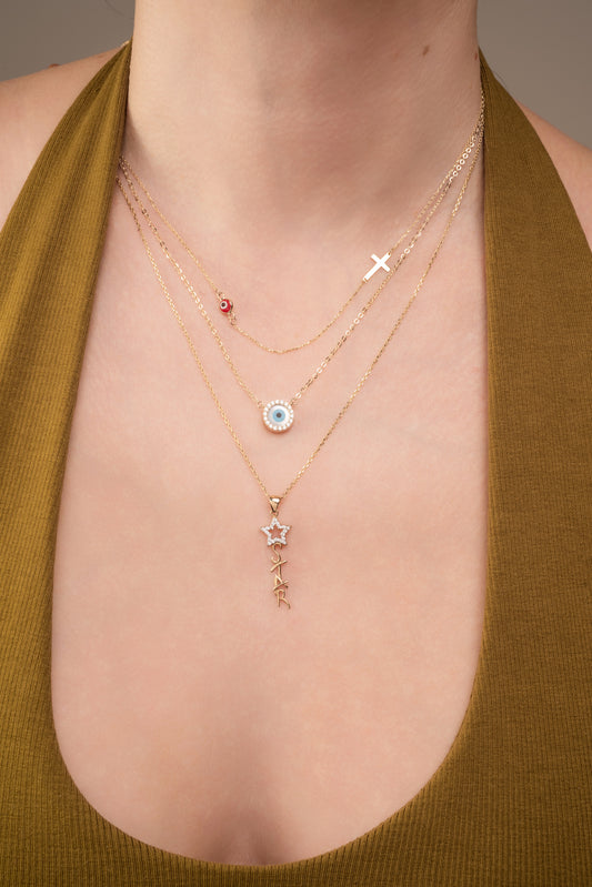 Gargantilla 10 kilates dije de ojo de zirconias azules y blancas
