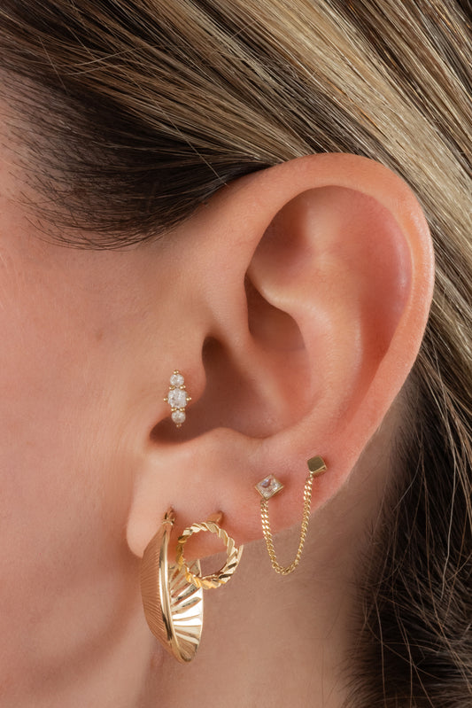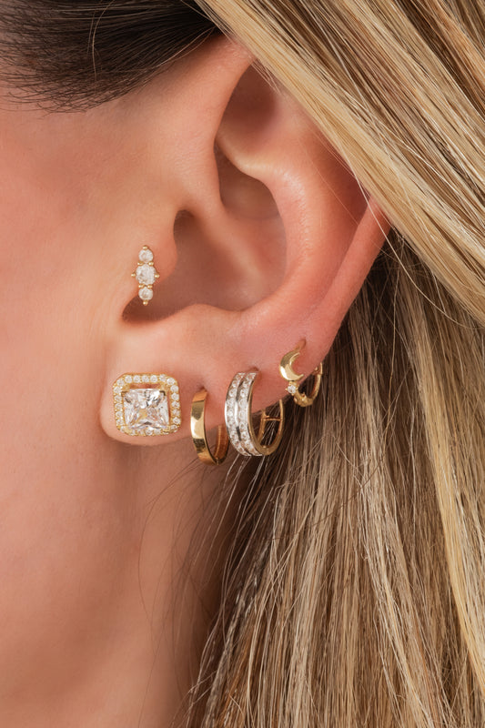 Huggie de oro sólido en 10 kilates con forma rectangular orillas redondeadas y zirconias biseladas.Precio habitual $ 4,095.00Precio habitualPrecio unitario por-
