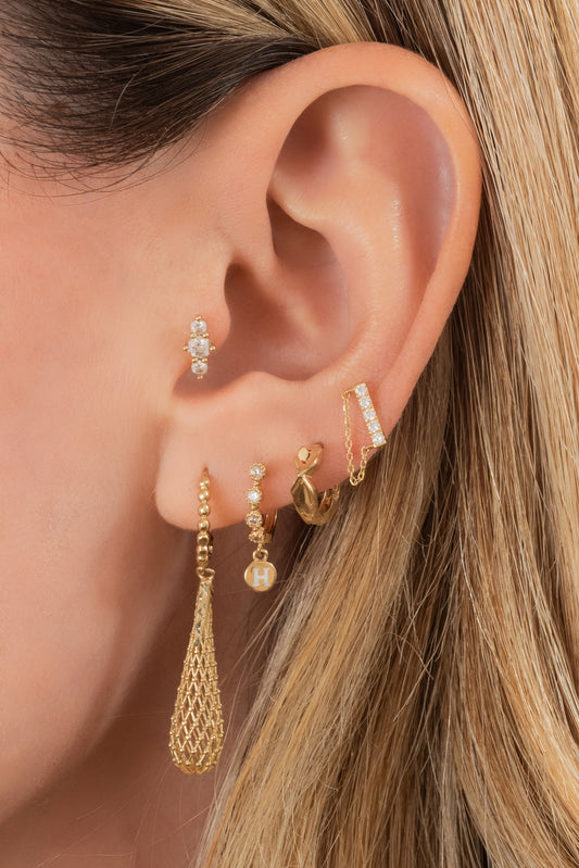 Huggie de oro sólido en 10 kilates con zirconias y detrás hueco en cuadros.Precio habitual $ 2,695.00Precio habitualPrecio unitario por