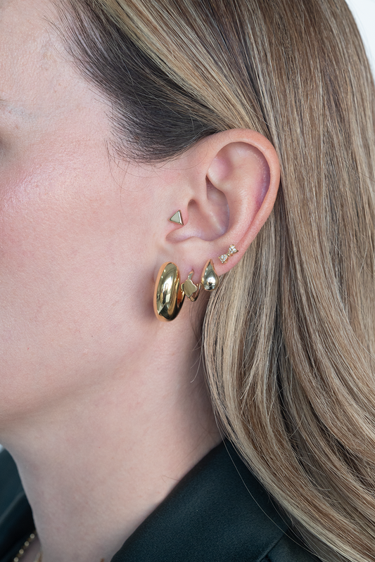 Huggie 10 kilates flor de cuatro pétalos con esmaltado verde.Precio habitual $ 2,895.00Precio habitualPrecio unitario por-
