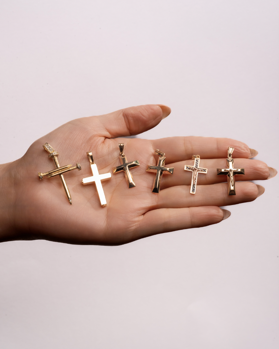 Huggie de oro sólido en 14 kilates con doble tiángulo en placa lisa.