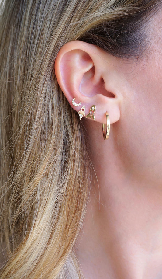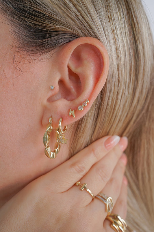Arracada de oro sólido en 14 kilates doblés hacia afuera.