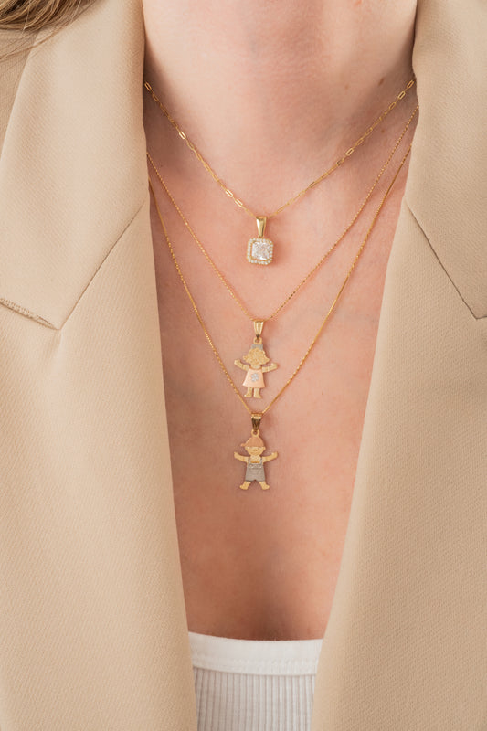 Cadena de oro sólido en 10 kilates con eslabón rectangular ultra fino corta.