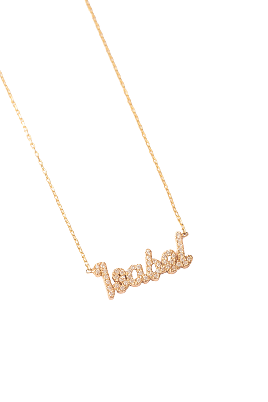 Collar De Oro Sólido Personalizado Cursiva Clásica