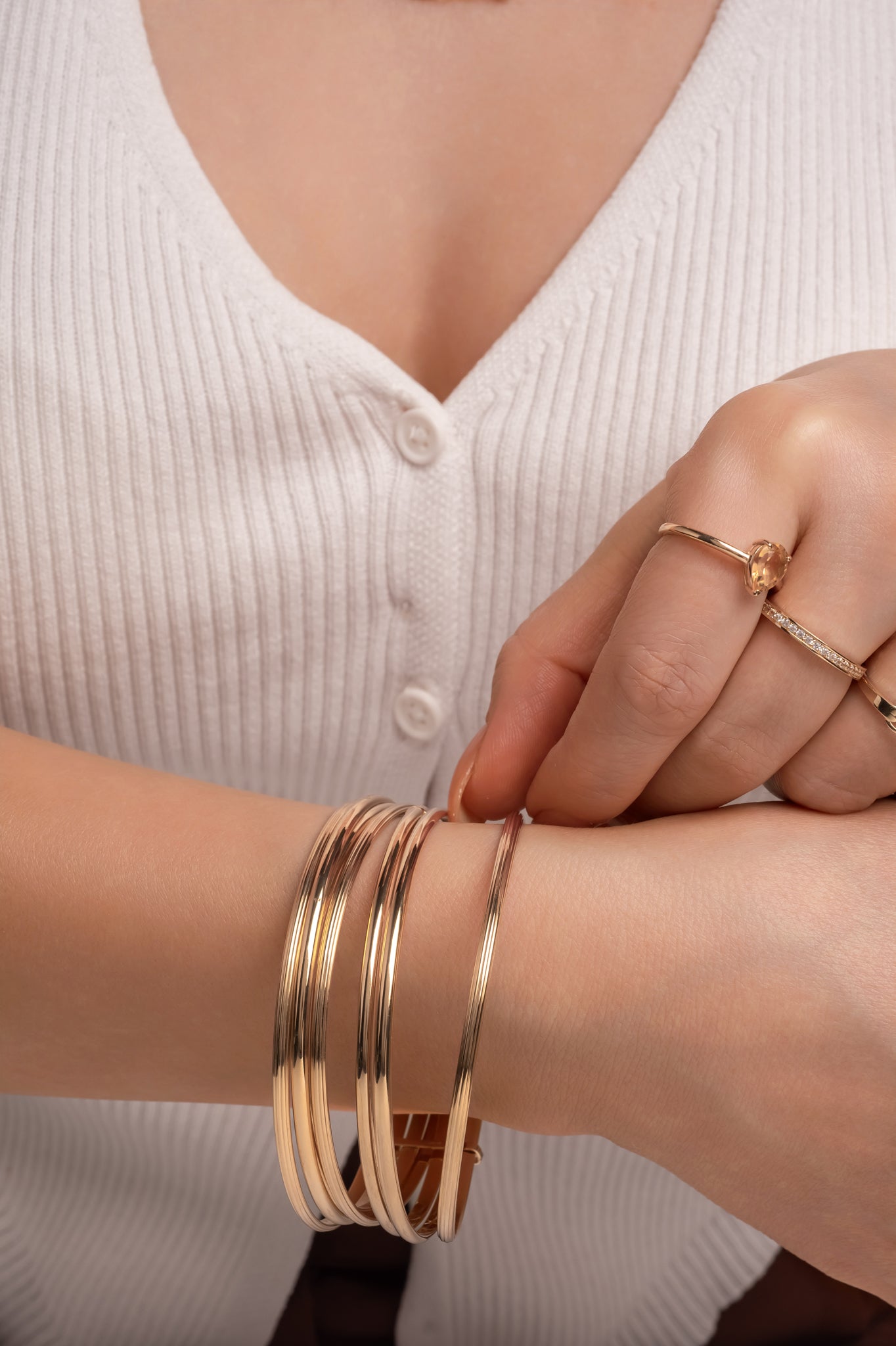 Aro semanario de oro sólido en 14 kilates con siete aros lisos de oro amarillo tubulares.