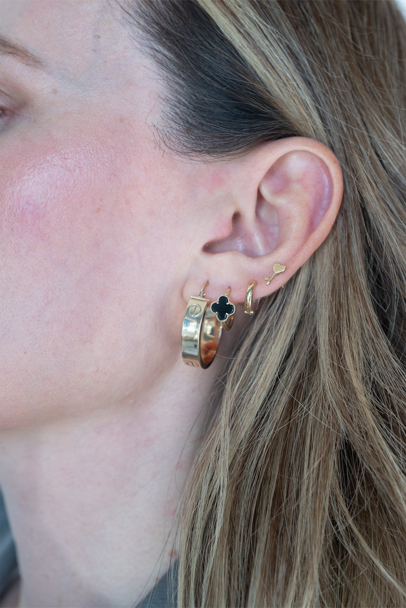 Arracada 10 kilates ancha gruesa y clavos lisos tamaño chica.