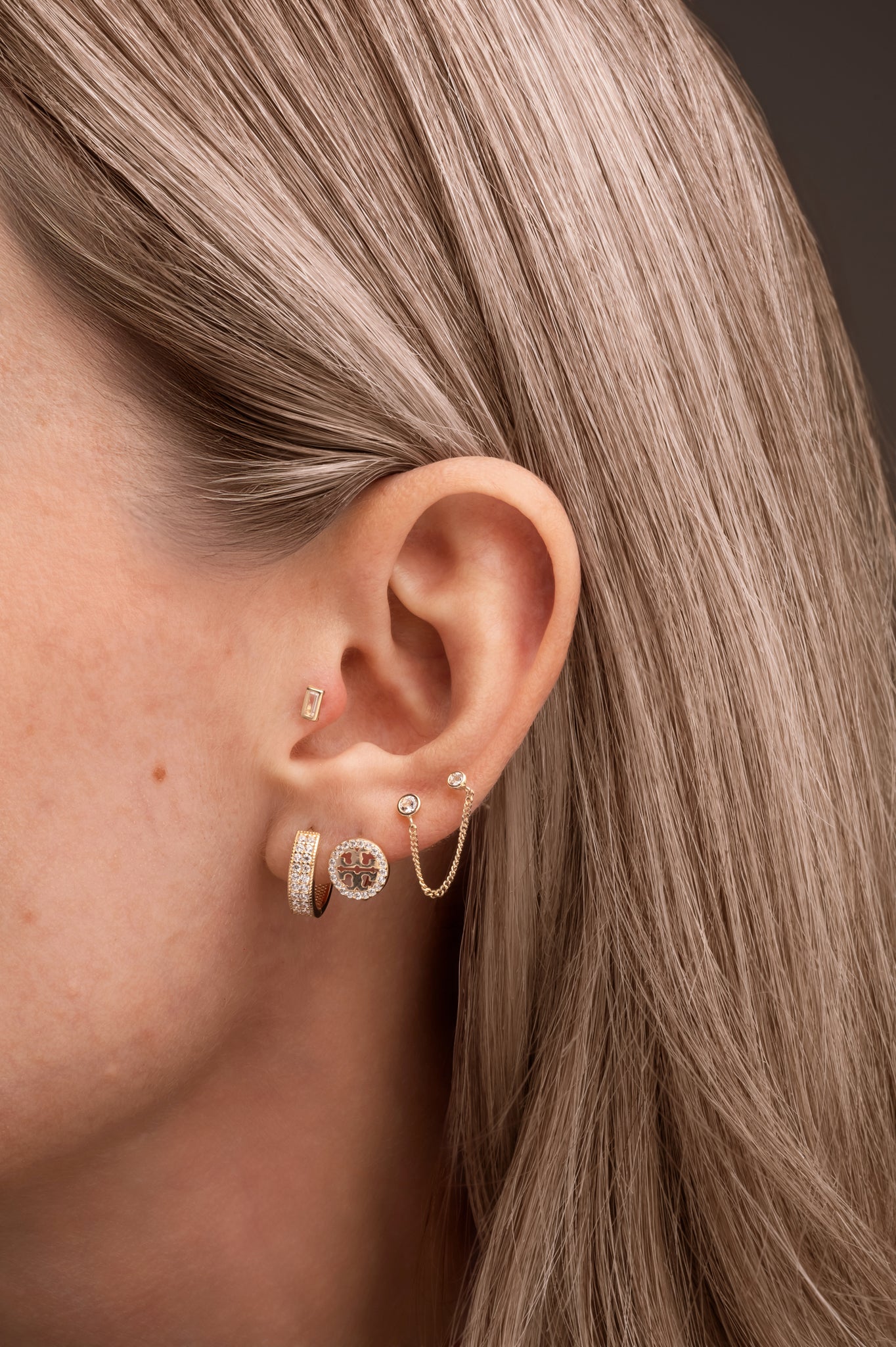 Arracada de oro sólido en 10 kilates con dos hileras de zirconias biseladas.