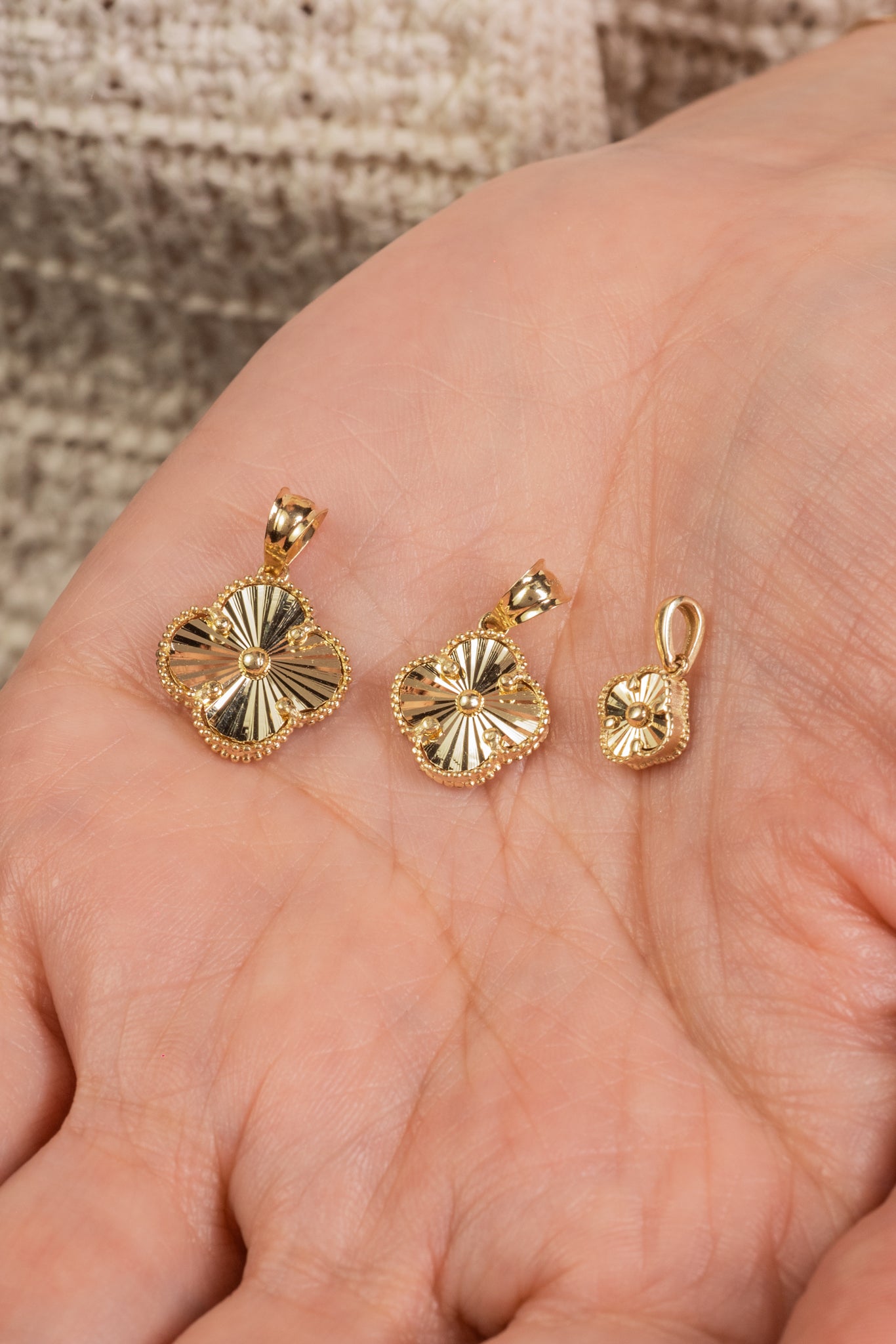 Dije de oro sólido en 10 kilates con flor de cuatro pétalos diamantada chica.