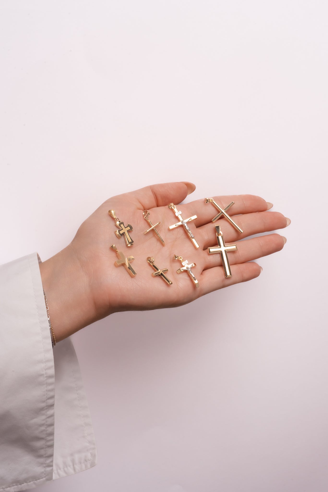 Dije de oro sólido en 10 kilates con forma de cruz rectangular delgada