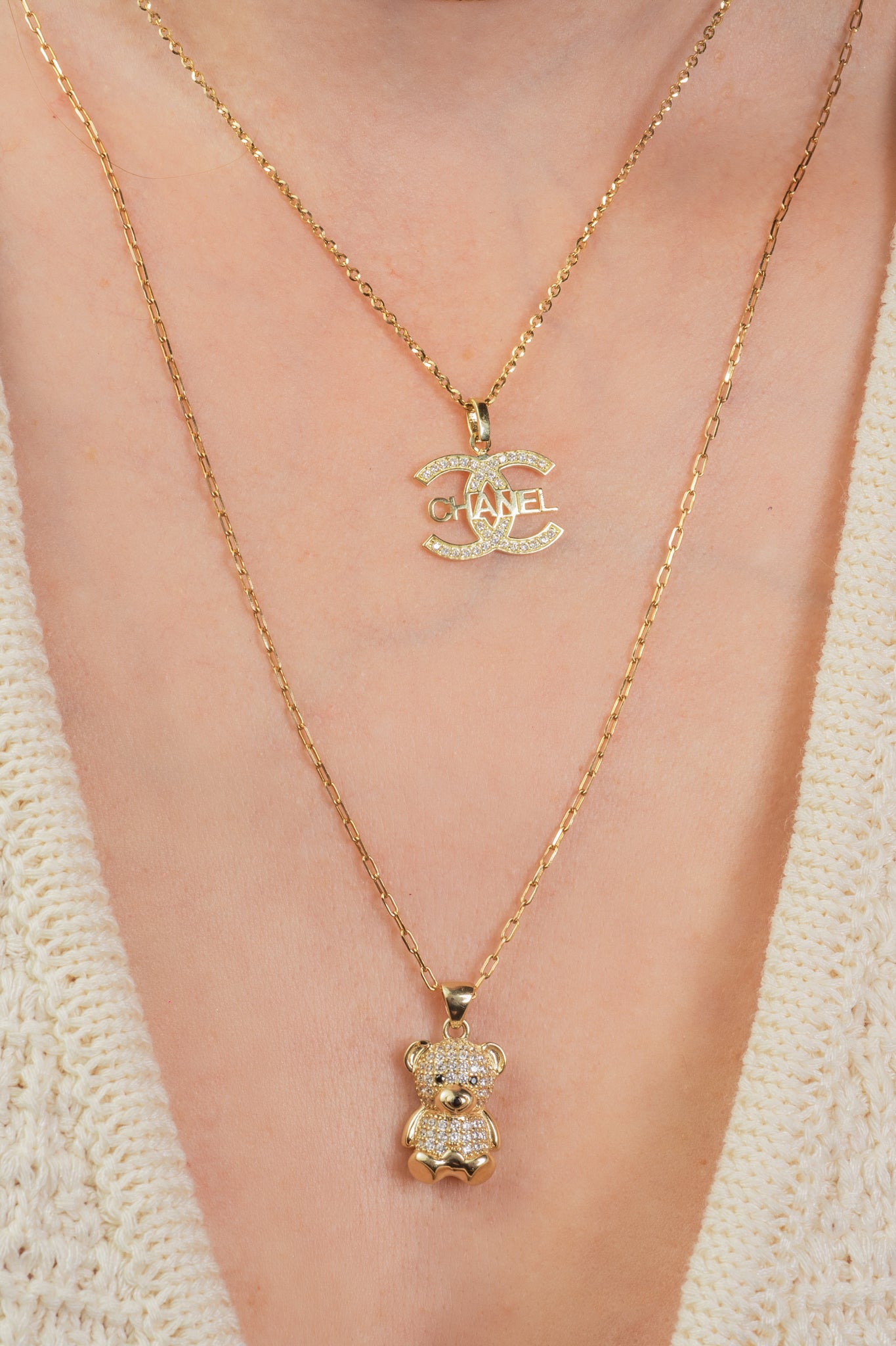 Dije de oro sólido en 10 kilates con oso tupido de zirconias blancas.