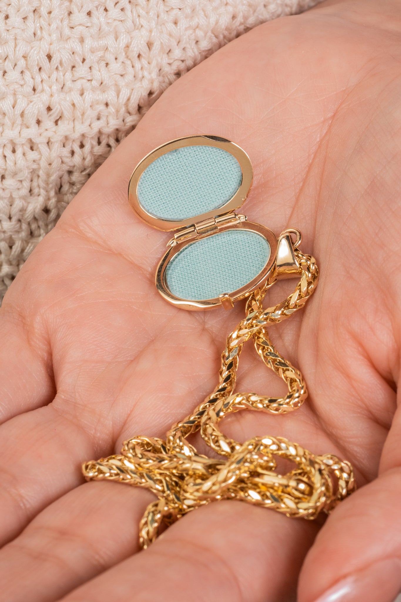 Dije de oro sólido en 10 kilates con relicario e imágen de la Virgen de Guadalupe.
