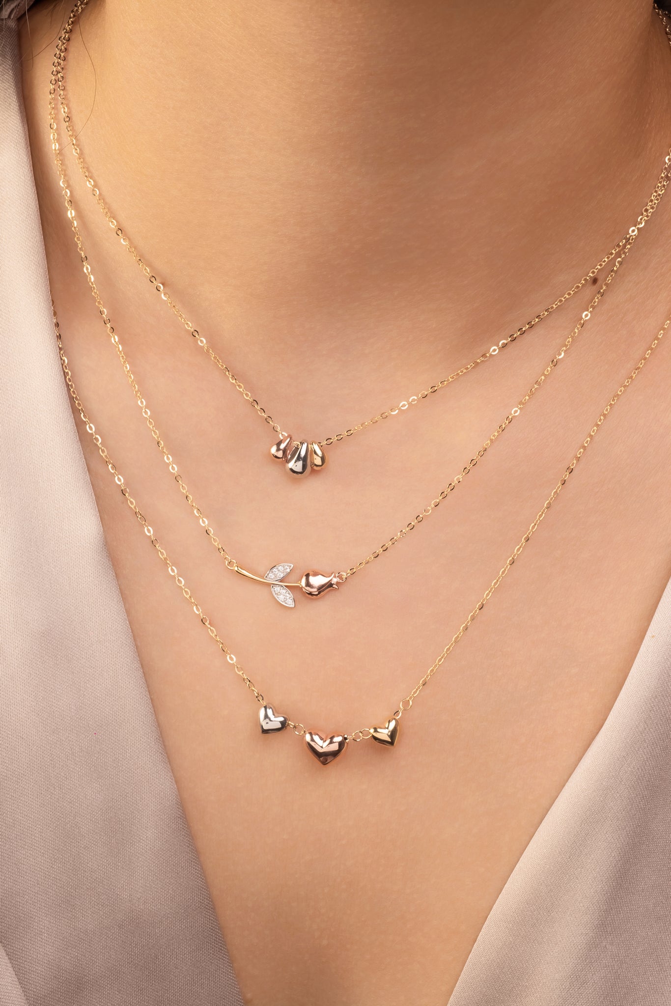 Gargantilla 10 kilates dije de rosa en oro rosa, hojas de zirconia y tallo oro amarillo