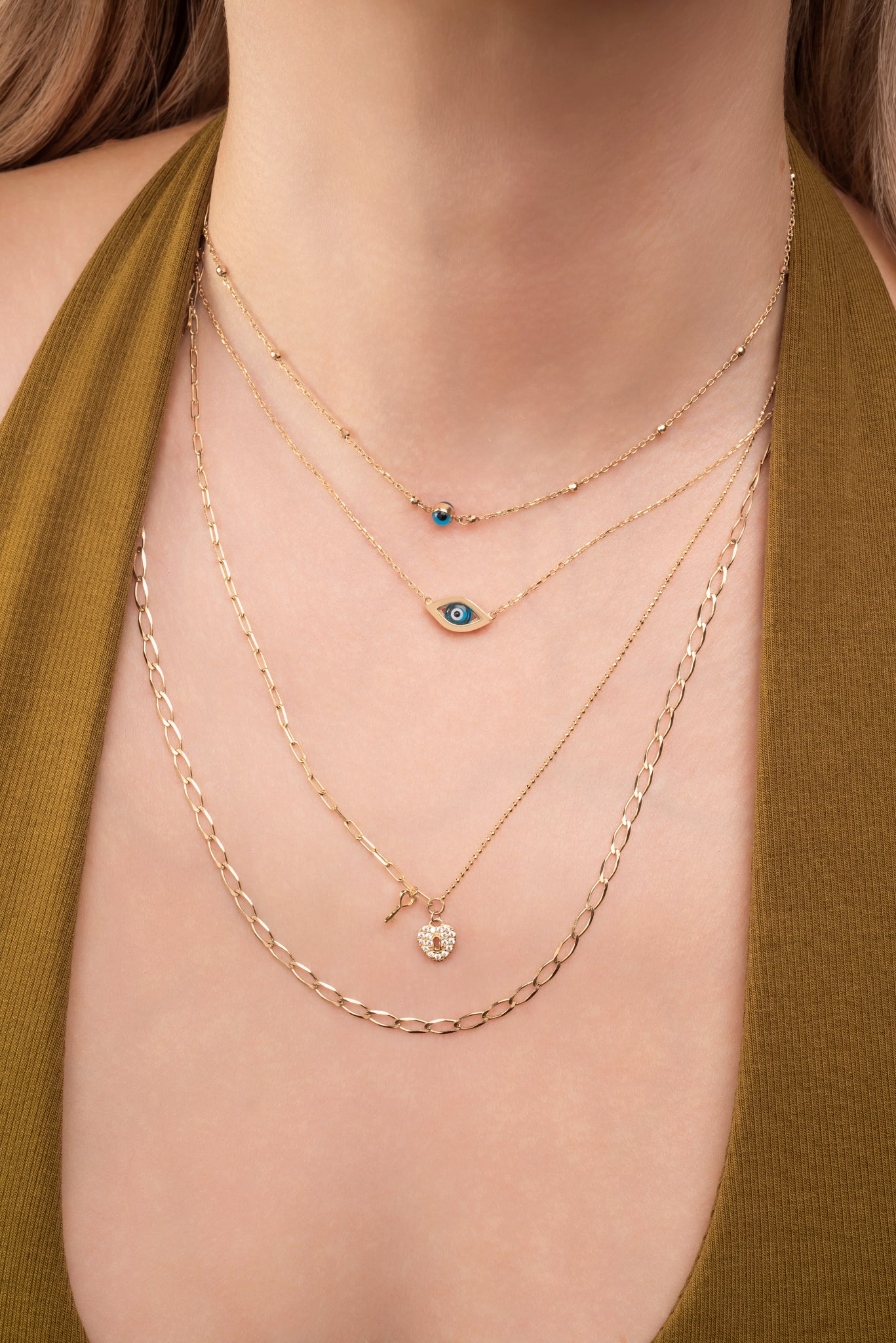 Gargantilla de oro sólido en 10 kilates con un ojo turco con un contorno de zirconias