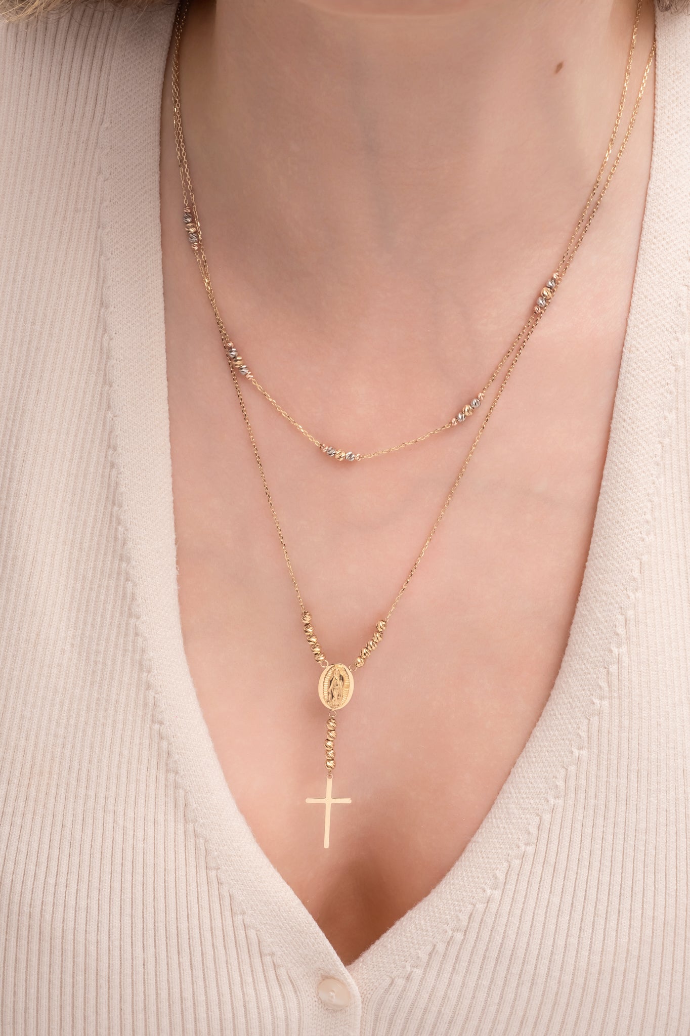 Gargantilla de oro sólido en 10 kilates con bolitas en oro florentino en estilo diamantado