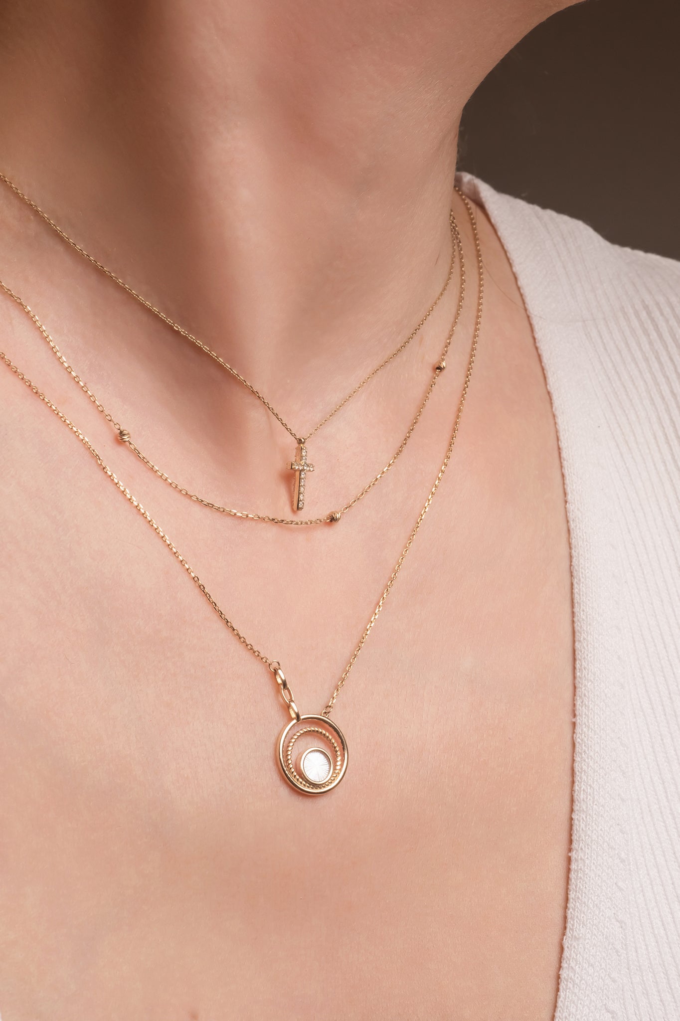 Gargantilla de oro sólido en 10 kilates con forma de cruz con zirconia mediana