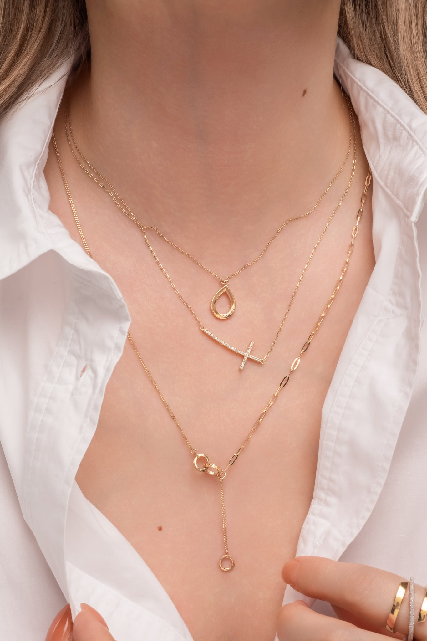 Gargantilla de oro sólido en 10 kilates con una cruz lateral delgada y larga con zirconia