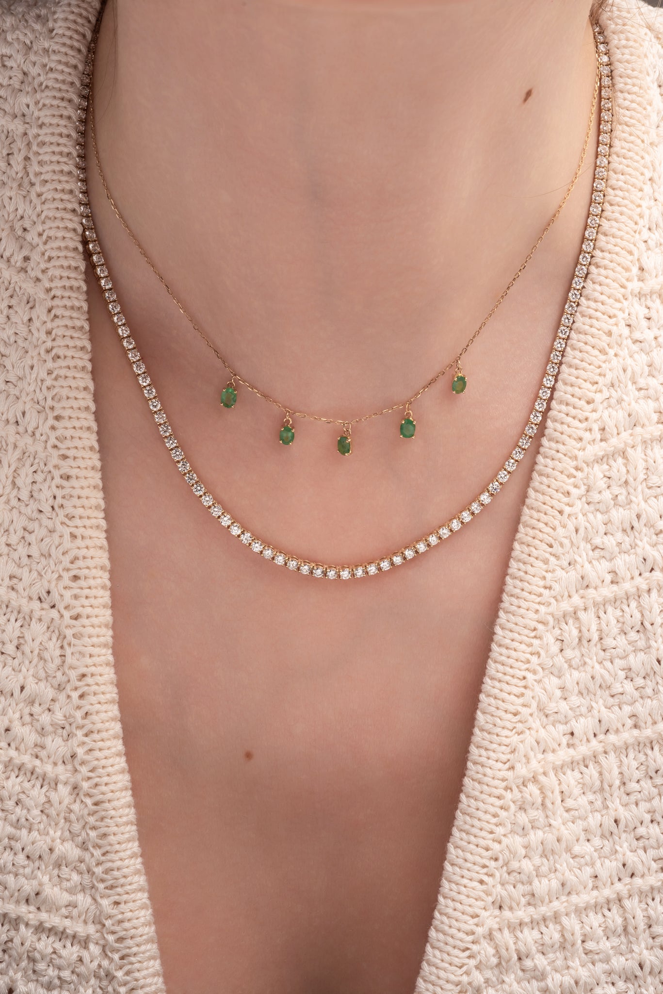 Gargantilla de oro sólido en 14 kilates con cinco esmeraldas colgantes ovales.