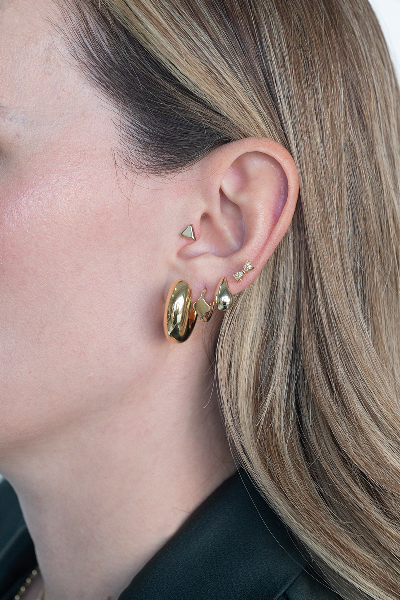 Huggie 10 kilates flor de cuatro pétalos lisa.