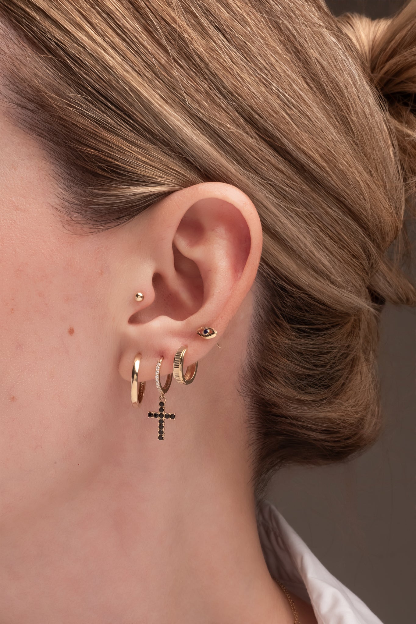 Huggie de oro sólido en 10 kilates con líneas diamantadas brillos.