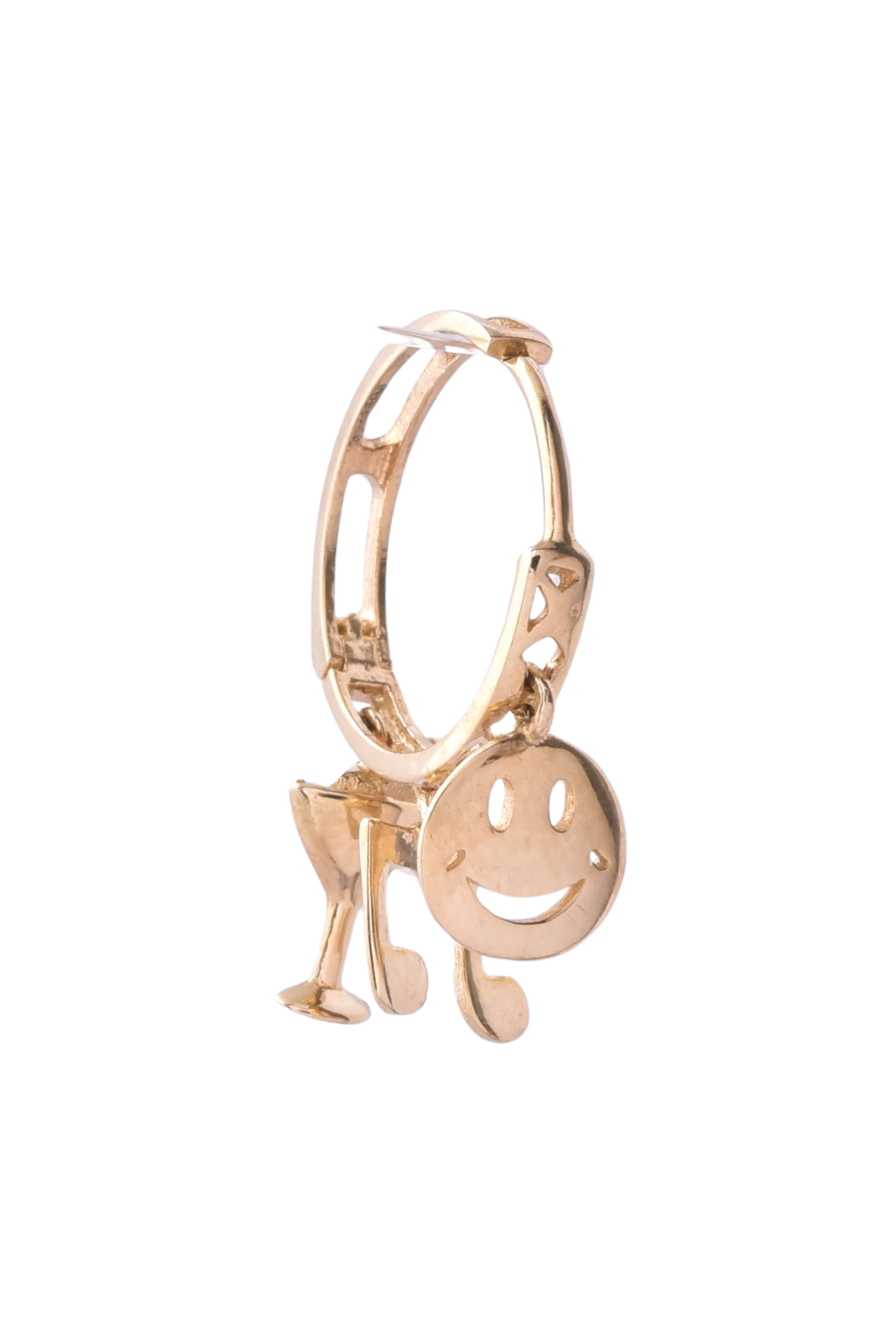 Huggie de oro sólido en 10 kilates con dijes varios de carita feliz, nota musical y copa de oro amarillo