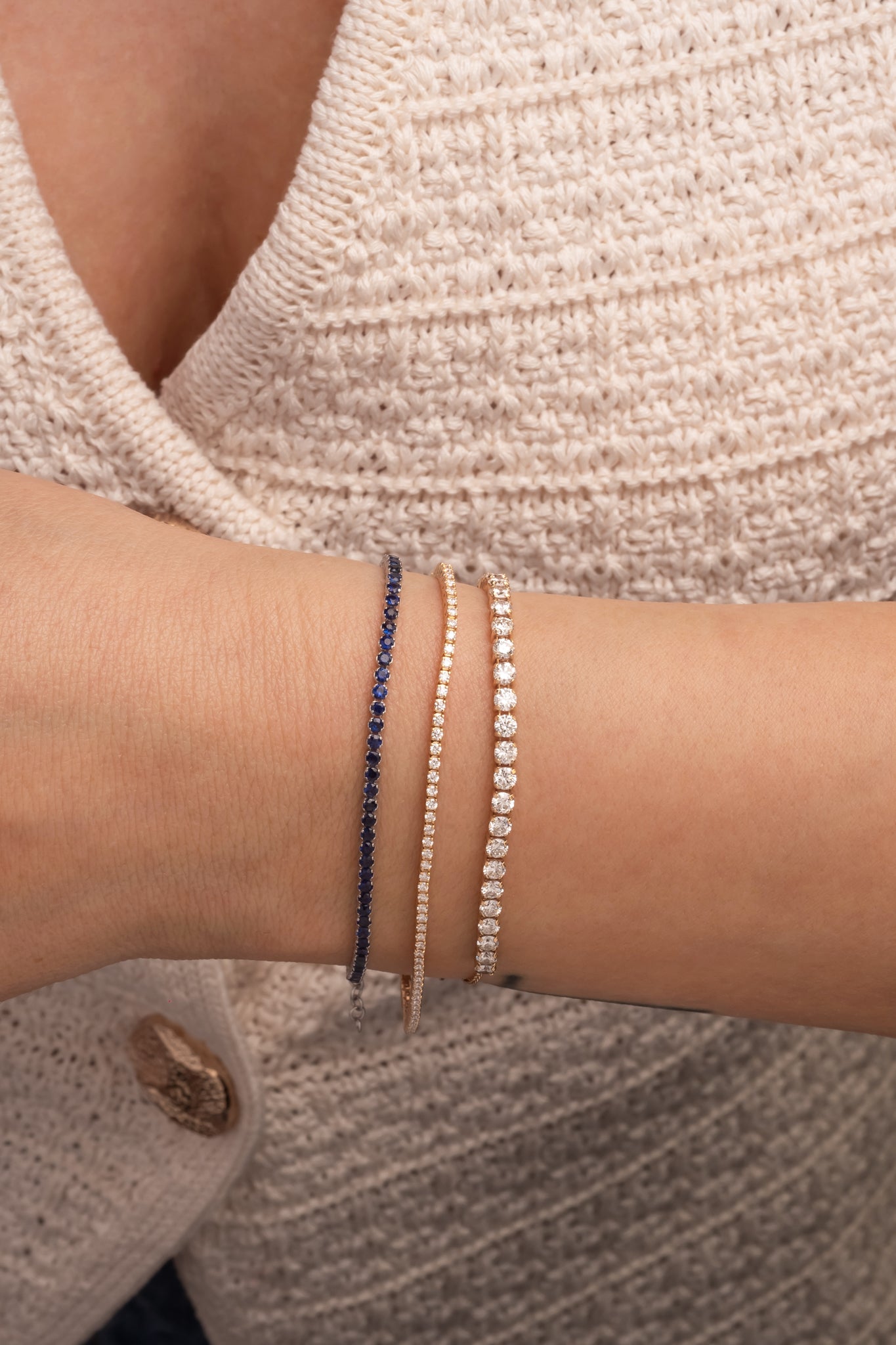 Pulso de oro sólido en 14 kilates con tejido tenis de zafiros de 2.3 cts 15+3 cm montados sobre oro blanco.