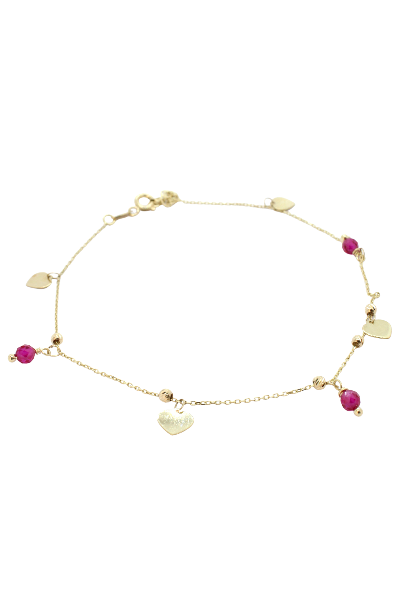 Pulsera para el tobillo de oro sólido e 10 kilates. Cuenta con dijes corazón lisos y piedras zirconia rosa colgantes. Esta tobillera te durará para toda la vida y le dará un toque a tu outfit.